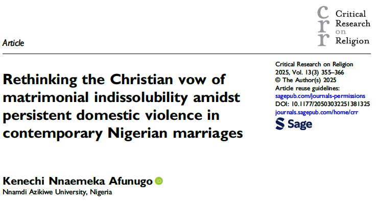 Kenechi Nnaemeka Afunugo, “Rethinking the Christian vow of matrimonial indissolubility amidst persistent domestic violence in contemporary Nigerian marriages”
